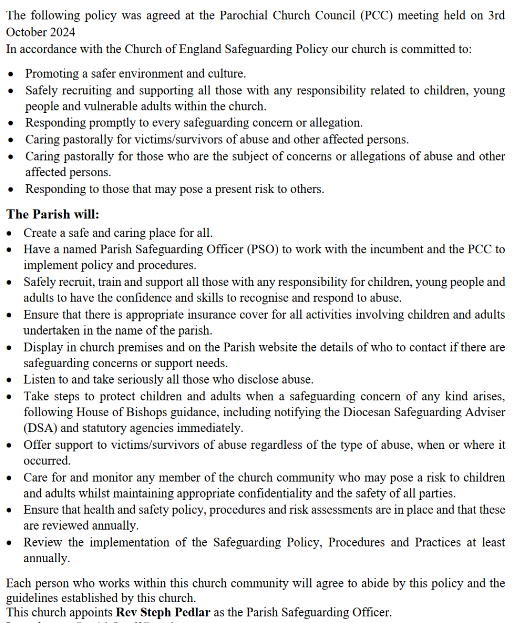 Parish Safeguarding HandbookModel Parish Safeguarding PolicyChurch of EnglandThe Parish of St Mary’s Houghton with Wyton-SAFEGUARDING POLICYPROMOTING A SAFER CHURCH